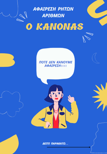 | Προαιρετική δραστηριότητα Μπορείτε να φτιάξετε την δική σας αφίσα ή και το δικό σας κομικ για τον κανόνα της αφαίρεσης!! |